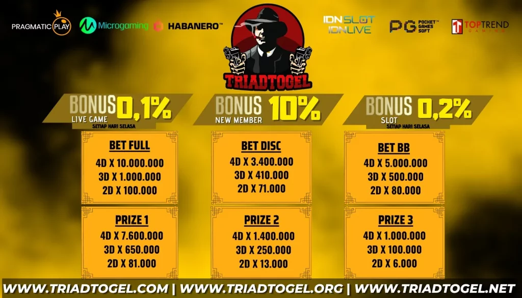 Triadtogel merupakan situs taruhan angka terpercaya dan terbesar di Indonesia yang telah hadir selama bertahun-tahun di Indonesia dan telah dipercaya oleh ribuan pecinta taruhan angka di Indonesia. Sejak hadirnya situs kami ke Indonesia, banyak pecinta taruhan angka yang beralih ke situs kami untuk memasang angka main mereka, karena di situs kami menyediakan berbagai pasaran live terpopuler dan juga prediksi pasaran terakurat yang dapat membantu anda dalam menentukan angka main anda, karena itulah situs kami jadi pilihan para pecinta taruhan angka di Indonesia.
